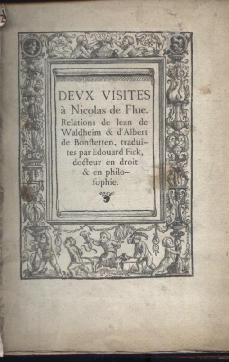 Deux visites à Nicolas de Flue. Relation de Iean de Waldheim & d0Albert de Bonstetten, traduites par Edouard Fick, docteur en droit & en philosophie