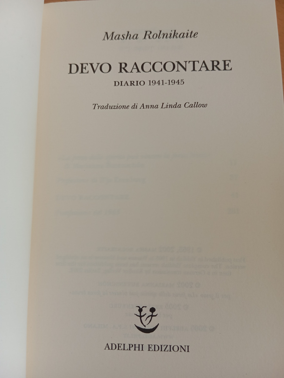 Devo raccontare Diario 1941-1945, Masha Rolnikaite, Adelphi, 2005