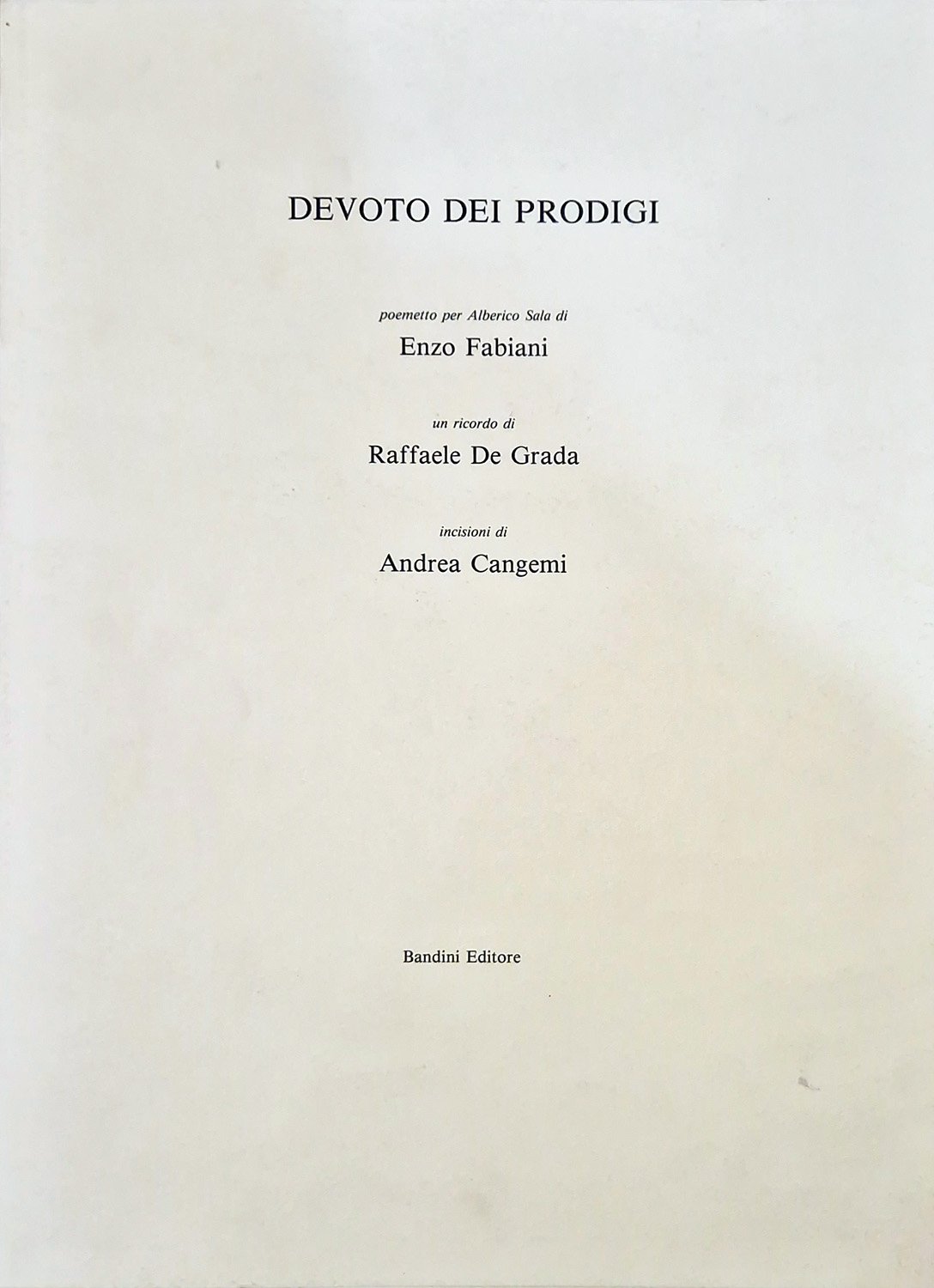 4°; pp. 51 stampate al solo recto con tav. f.testo in nero. Brochure edit. con titoli al piatto. Edizione in memoria di Alberico Sala nel terzo anniversario della scomparsa.