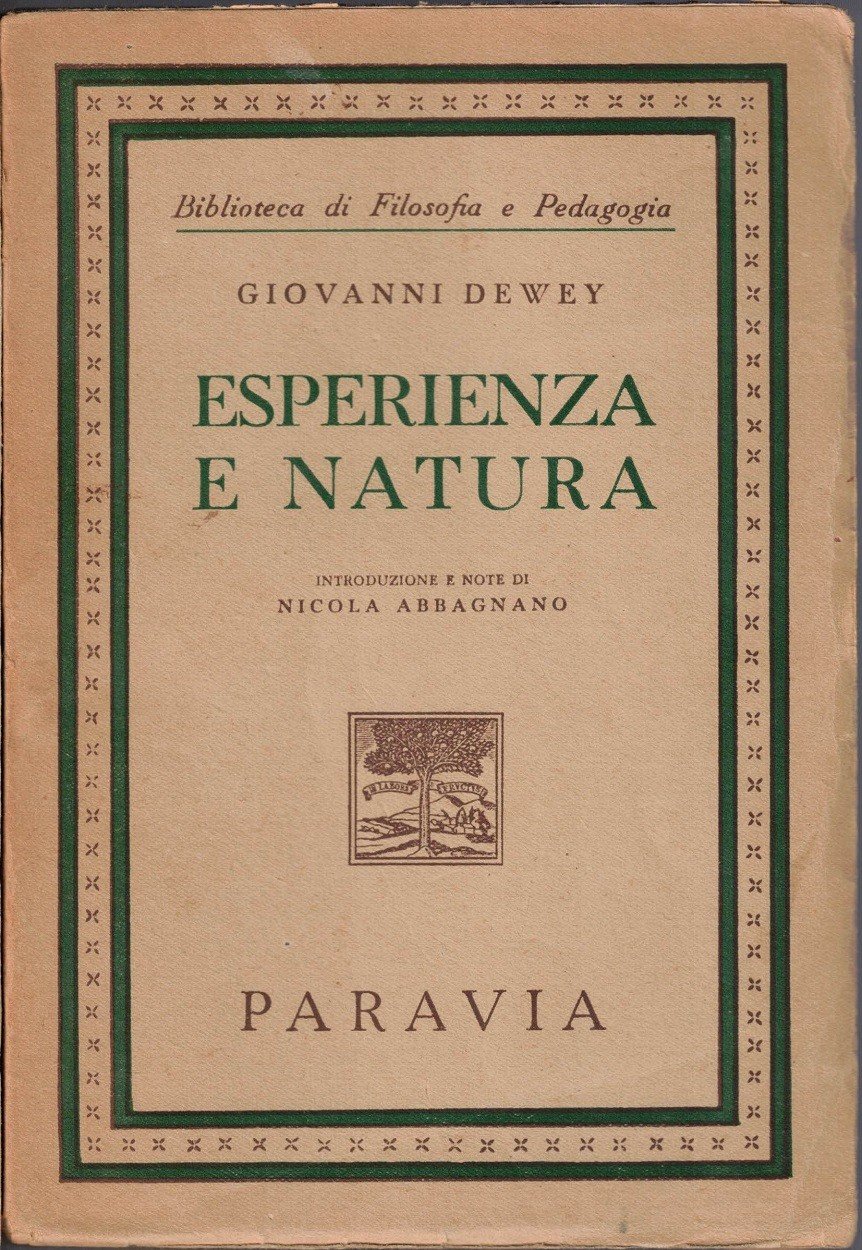 Giovanni (John) Dewey, Esperienza e natura, introduzione e note di Nicola Abbagnano, G. B. Paravia e C., Torino 1952, prima ed., seconda rist., pp. XXII, 161, cm 20, br. ed. Collana Biblioteca di filosofia e pedagogia. Tracce d’uso alla brossura, minime fioriture, leggera brunitura della carta, per il resto comunque buon esemplare, con interno ben tenuto e di piena fruibilità e brossura solida. In parte intonso.