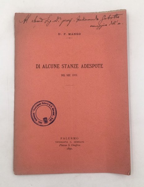 Di alcune STANZE ADESPOTE del sec. XVII. Edizione di soli 30 esemplari.