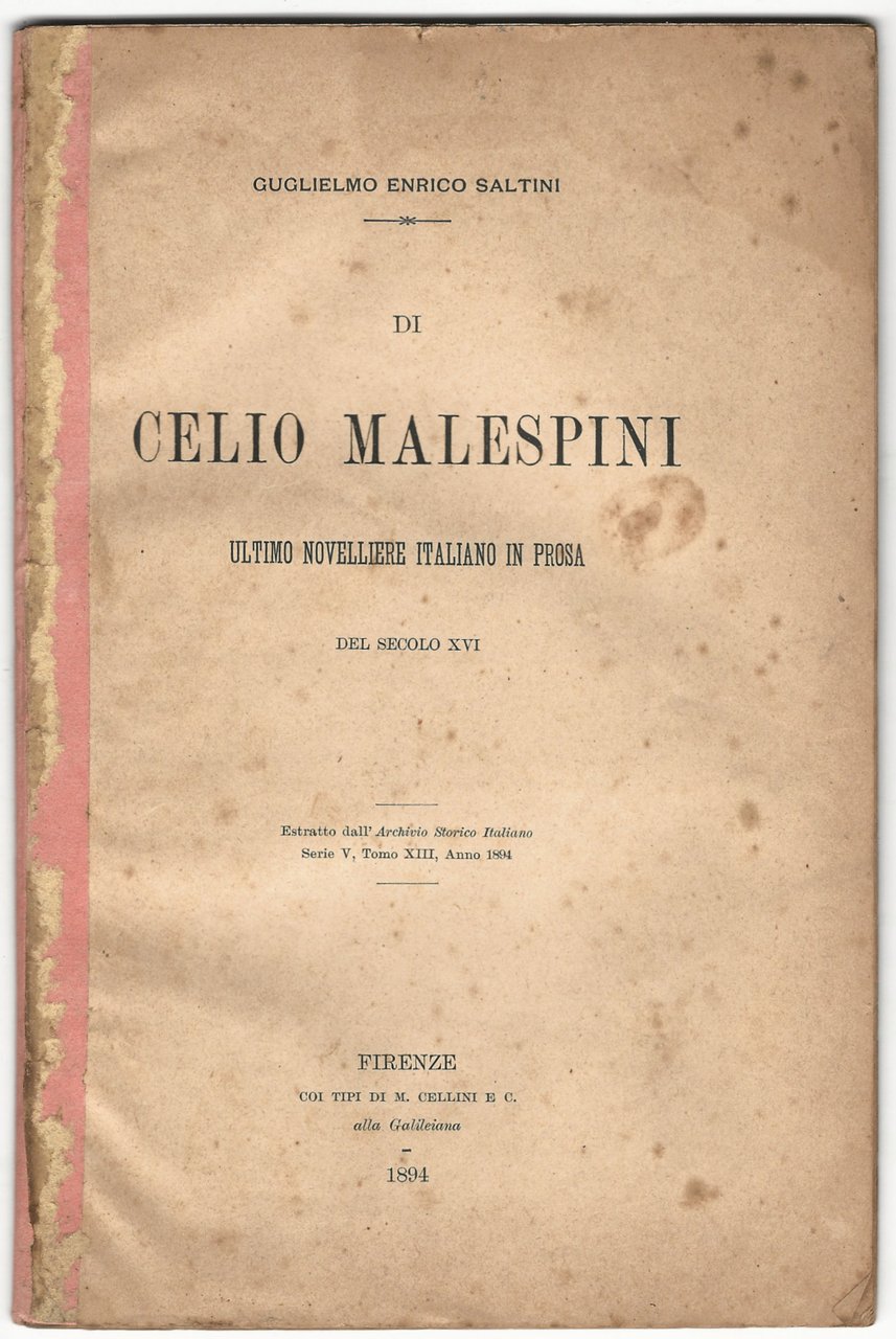 Di Celio Malespini ultimo novelliere italiano in prosa del secolo XVI.