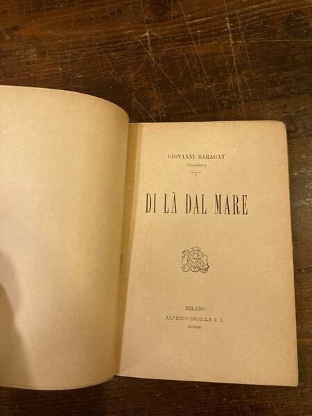 In-8°, pp. XIV, 216, (1), bella brossura editoriale a più colori illustrata da Chessa con scene di vita popolare sarda. Ottimo esemplare in barbe. Edizione originale di questa raccolta di racconti ispirati al Saragat dalla natia Sardegna e dalla vita della sua gente. Il primo dei racconti è ambientato nella pianura di Campidano. Il Saragat, avvocato e novelliere, nonché appassionato alpinista, nacque a Sanluri nel 1855 e morì nel 1938. Giornalista per molti anni sulla “Gazzetta piemontese”, pubblicò numerose raccolte di racconti ispirati all'avvocatura e alle ascensioni alpine, alcuni dei quali in collaborazione con Guido Rey. Ciasca, 16009.