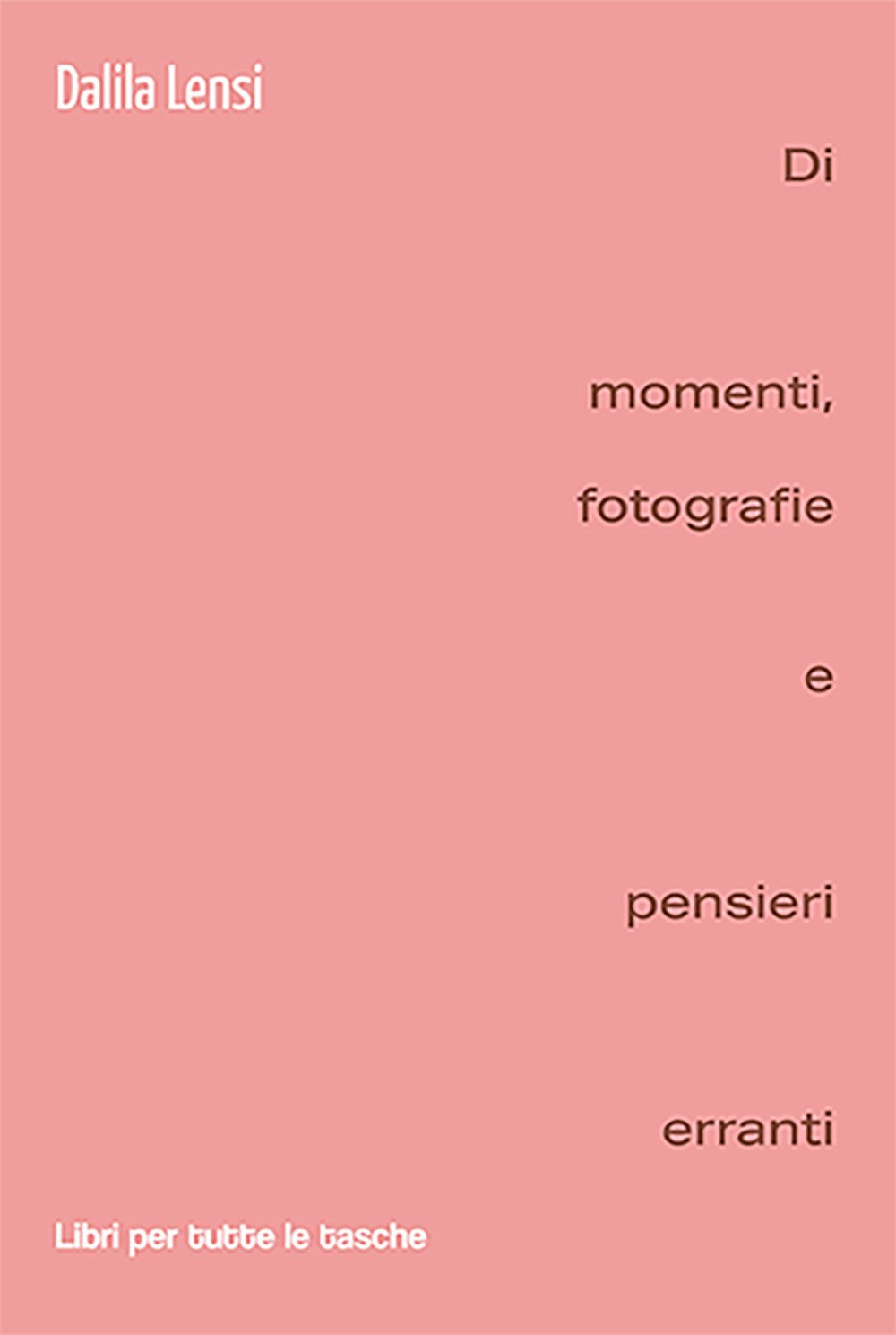 "Di momenti, fotografie e pensieri erranti" unisce echi di bellezze, bisbigli notturni e riflessioni in attimi sospesi. L'assenza è protagonista, presenza ingombrante da cui non si sfugge, ed è l'assenza ad unire con un filo invisibile le quattro sezioni dell'opera, dove italiano e romanesco si mescolano in mezzo ai ricordi. Emerge così una mancanza di spazio, di un tempo scandito e soprattutto di un passato che non ritornerà.