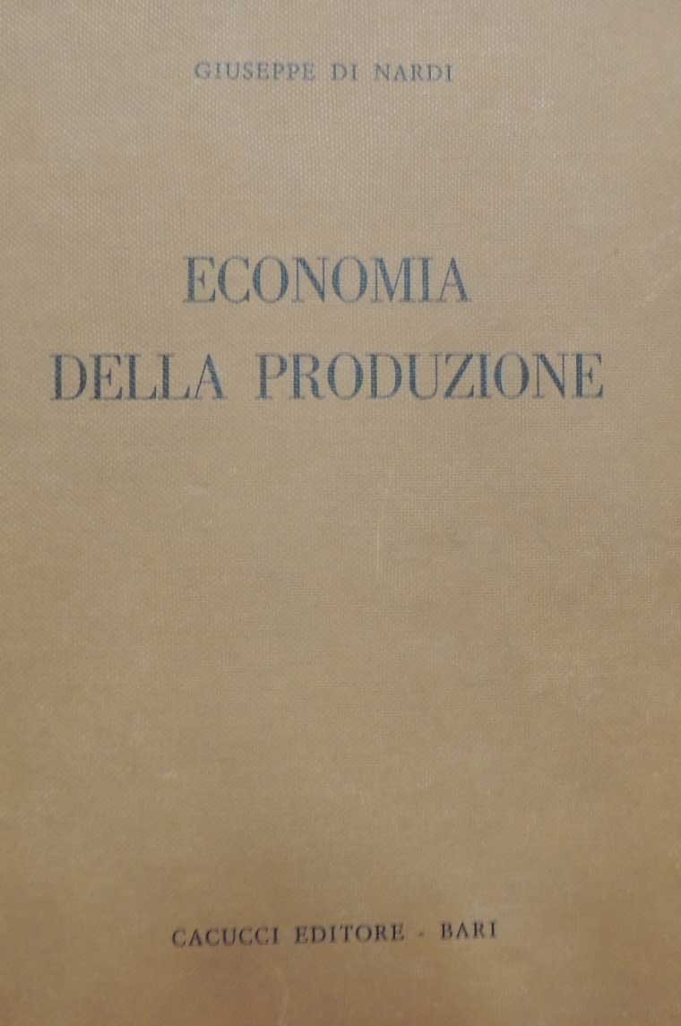 Giuseppe Di Nardi, Economia della produzione, Dott. Francesco Cacucci Editore, Bari 1970, pp. XIII, 346, cm 25, legatura in cart. ed. con titoli al dorso e al piatto. Tracce d’uso, lievi abrasioni ai margini dei piatti, alcune sottolineature a annotazioni a biro e a lapis, ma nel complesso ancora buona copia in condizioni più che accetabili e perfettamente fruibile.