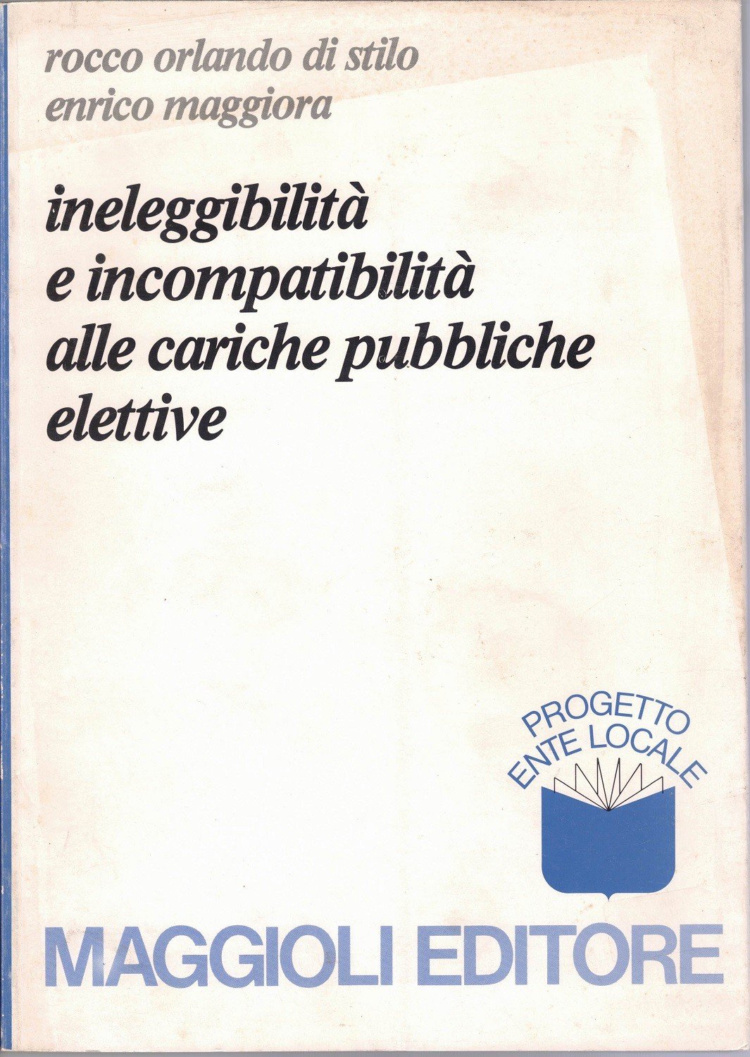 Rocco Orlando Di Stilo, Enrico Maggiora, Ineleggibilità e incompatibilità alle cariche pubbliche elettive, Maggioli Editore, Rimini 1985, pp. 223, cm 24, br. ed. con alette. Collana Progetto Ente Locale, 4. Ordinari segni del tempo, per il resto ben conservato.