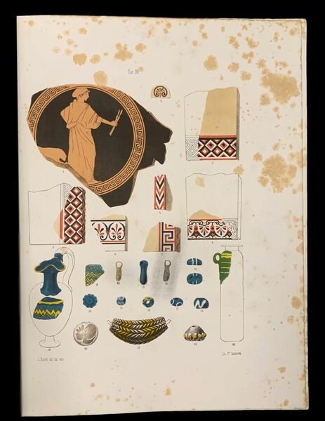 In folio; (8), 93, (3) pp. e 17 c. di tav. delle quali diverse a colori. Brossura editoriale illustrata con titolo impresso, entro cornice, al piatto anteriore. Qualche piccola mancanza alla brossura del dorso. Qualche lievissima fioritura dovuta alla qualità della carta e nel complesso esemplare in buone condizioni di conservazione. Antica firma d'appartenenza al margine alto del piatto anteriore e piccolo timbro di appartenenza privata al piatto anteriore ed al frontespizio che identifica l'esemplare come appartenuto al Principe Lorenzo Corsini come dono, autografo, del Conte Pompeo Aria, celebre archeologo che sulle orme del padre Giuseppe, fu il primo organizzatore della collezione etrusca della città di Marzabotto. Giovanni Gozzadini (Bologna, 15 ottobre 1810 Ronzano, 25 agosto 1887) fu un celebre storico, archeologo e politico italiano. "Dagli scavi compiuti nella sua tenuta di Villanova di Castenaso, dietro la parrocchia di Santa Maria delle Caselle, tra 1853 e il 1856, iniziò la conoscenza della civiltà Villanoviana, risalente all'età del ferro. La scoperta più rilevante è sicuramente la necropoli con 179 tombe a cremazione e 14 a inumazione. Sempre a lui furono affidate le prime campagne di scavo che, dal 1862 al 1870, portarono alla luce la necropoli etrusca di Marzabotto, finanziate dai conti Aria, allora proprietari dell'intero Pianoro di Misano. [.] A lui si deve il primo meticoloso studio delle torri gentilizie di Bologna, che nel 1875 pubblica con una monografia; ne conta più di 200, e con accurato studio ne attesta un centinaio". Nel 1550 Leandro Alberti in uni suo scritto aveva suggerito la possibilità dell'esistenza, nell'antichità, di una citta' nel Pian di Misano in quanto erano ancora visibili strutture murarie antiche e ancora in vista, mosaici e monete. Serafino Calindri, nel 1782 , riprese la notizia nel suo Dizionario Corografico Georgico Orittologico Storico dell'Italia aggiungendo che nel Pian di Misano erano evidenti scavi alla ricerca di preziosi materiali nella zona dove si torvavano muri antichi e mosaici a vista. Nel 1831 G. Aria acquistò i terreni del Pian di Misano vennero acquistati nel 1831 e decise di portare avanti una raccolta con consegunete conservazione dei reperti qui reperiti che venivano in continuazione portati alla luce dai lavori agricoli. Il primo rinvenimento di notevole importanza avvenne nel 1839 quando, ai piedi dell'acropoli, comparvero 30 statuette di bronzo, seguite poco dopo da altri bronzetti e da alcune tombe del sepolcreto nord. Nel 1856 verranno poratati alla luce gli edifici sacri dell'acropoli. Ma è a partire dal 1862-63 che Aria finanziò una vera e propria campagan archeologica, assegnando al conte Gozzadini, già scopritore della necropoli di Villanova, la direzione dei lavori. Le due campagne di scavi seguite da Gozzadini, vennero ben illustrate, appunto con queste due pubblicazioni. Gozzadini aveva erroneamente pensato di aver rinvenuta una necropoli di enormi dimensioni ma in occasione del V Congresso Internazionale di Antropologia e Archeologia Preistoriche tenutosi a Bologna nel 1871, G. Chierici diede una corretta interpretazione dei risultati di scavo fu G. Chierici, arrivando a sostenere che in Marzabotto, non si trovava una necropoli semplice ma i resti di una citta' con strade, case, templi e sepolcreti. L'opera è corredata da un'importante apparato grafico, con alcune tavole con ricchissima e fine coloritura coeva. Rif. Bibl.: Frati, 8283.