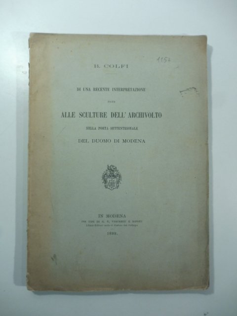 In 8, cm 18 x 25, pp. 124 con 1 tavola fotografica fuori testo e illustrazioni nel testo. Brossura editoriale (posteriore rifatta). Dedica autografa all'occhietto dell'autore. Studio su questa porta del celebre duomo, detta della pescheria