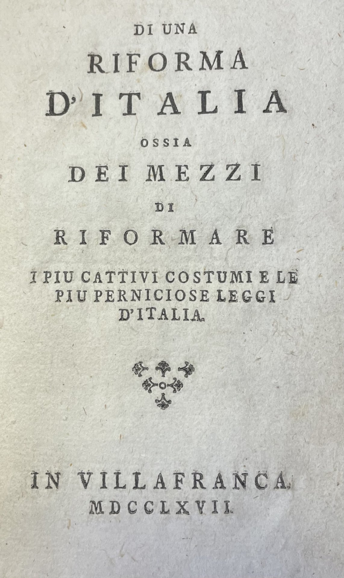 DI UNA RIFORMA D' ITALIA OSSIA DEI MEZZI DI RIFORMARE I PIÙ CATTIVI COSTUMI E LE PIÙ PERNICIOSE LEGGI D' ITALIA