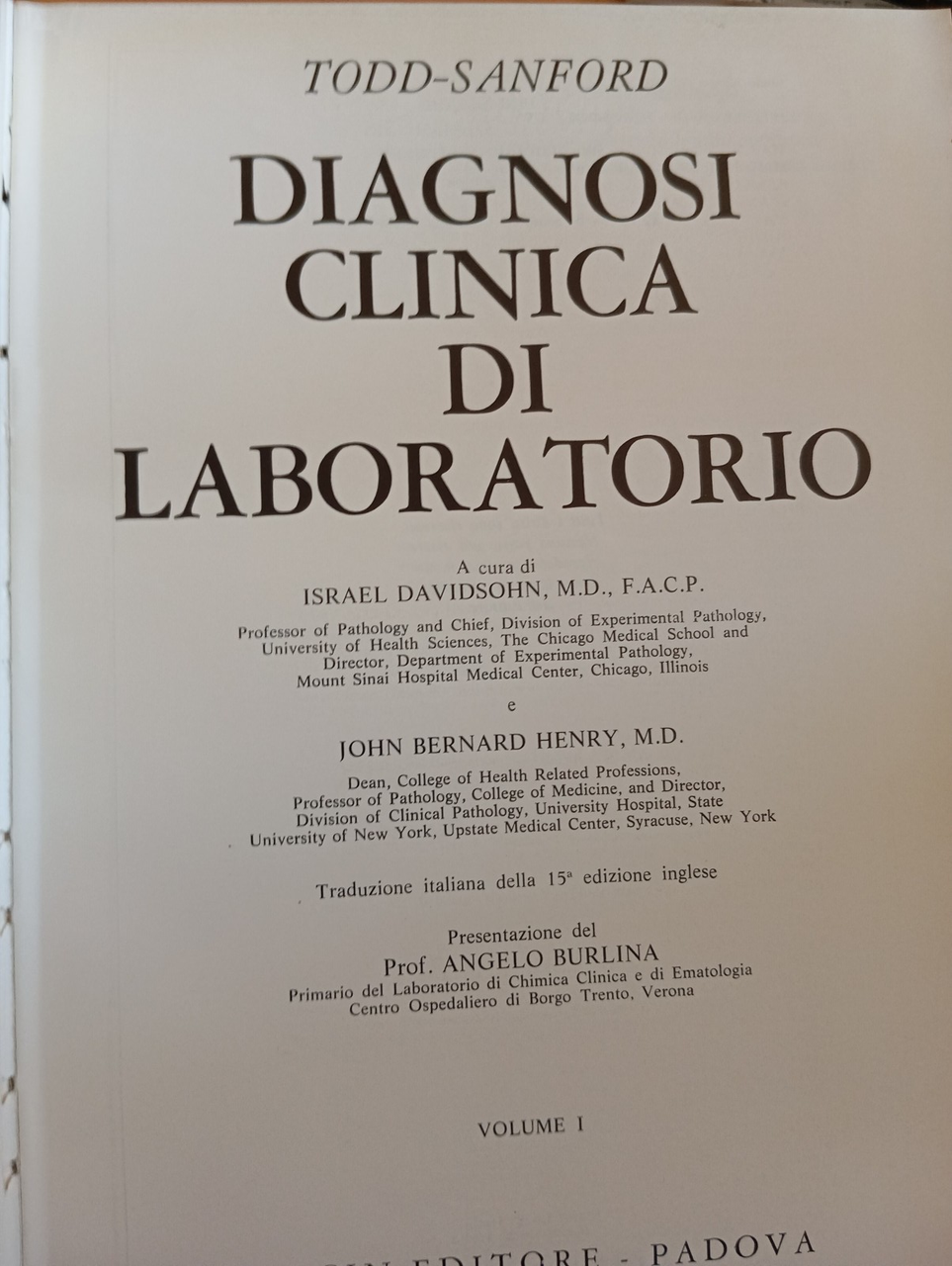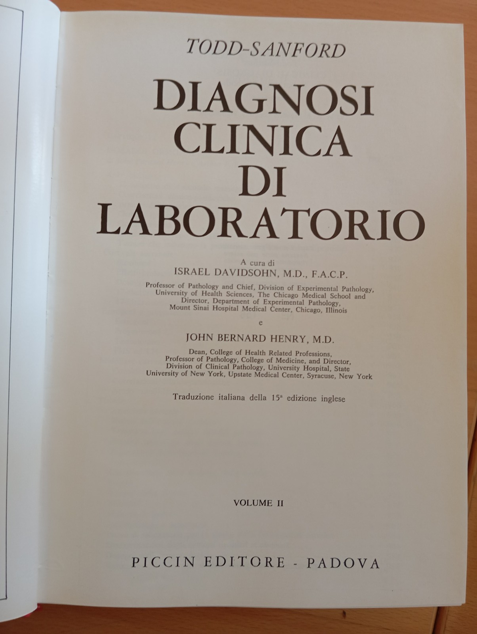 Diagnosi clinica di laboratorio, 2 volumi, Todd - Sanford, Piccin, 1978