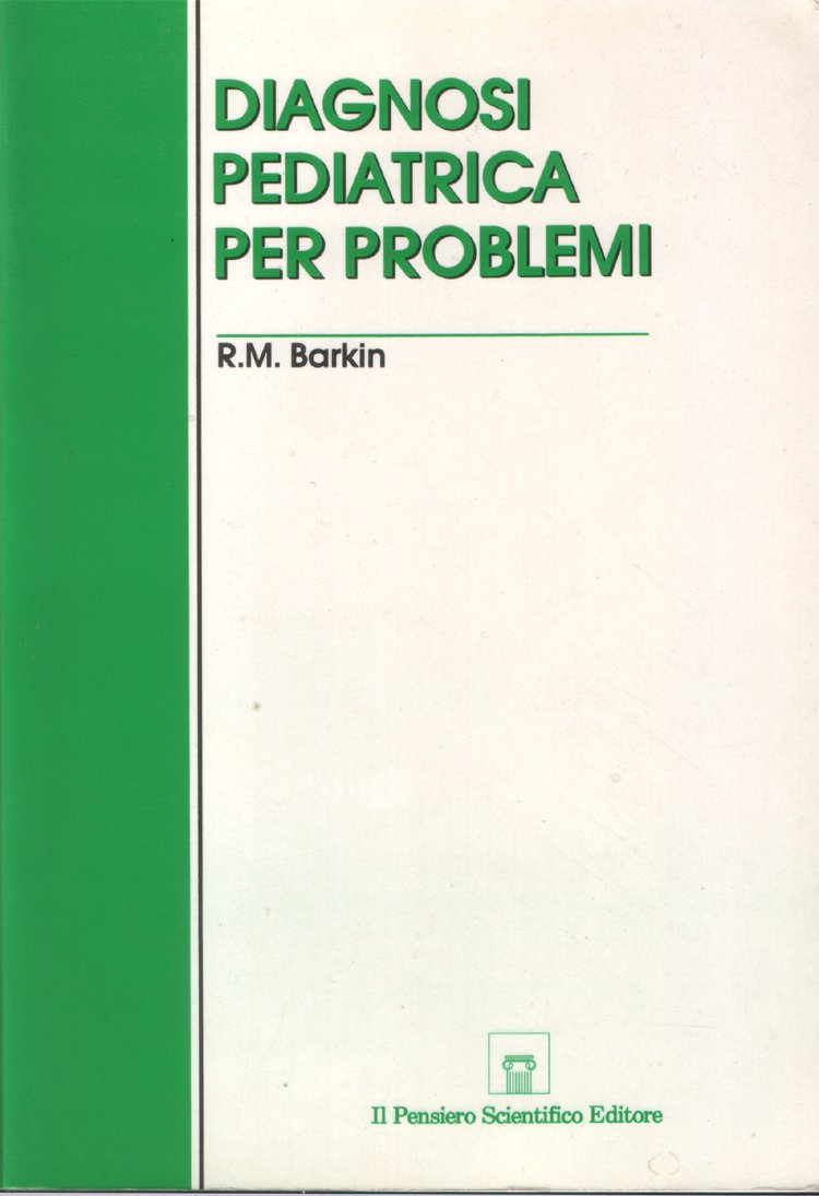 In-8°, pp. IX, (1), 258, copertina editoriale. Con quattro tavole fuori testo, a colori, ospitanti inserzioni pubblicitarie e carattere farmaceutico. In ottimo stato. Tiratura speciale per Roussel Pharma S.p.A. Pubblicazione scientifica riservata ai Sigg. Medici. Indice: Prefazione. 1. Approccio al bambino sano; 2. La rianimazione in pediatria; 3. Shock; 4. Problemi idro-elettrolitici; 5. Febbre; 6. Deficiti di accrescimento; 7. Encopresi; 8. Enuresi; 9. Irritabilità; 10. Dolore toracico; 11. Aritmie e cardiopalmo; 12. Ipertensione; 13. Rash; 14. Otalgia; 15. Linfoadenopatia e rigonfiamento cervicale; 16. Scolo del naso ed epistassi; 17. Faringite e mal di gola; 18. Disturbi della vista; 19. Occhio rosso; 20. Dolore addominale; 21. Emorragia digestiva: ematemesi e rettorragia; 22. Stipsi; 23. Diarrea; 24. Disfagia; 25. Epatosplenomegalia; 26. Vomito; 27. Emorragia vaginale; 28. Perdite vaginali; 29. Anemia; 30. Emorragia; 31. Ipoglicemia; 32. Disturbi dello stato mentale; 33. Atassia; 34. Cefalea; 35. Paralisi; 36. Convulsioni; 37. Sincope; 38. Artralgie e dolori articolari; 39. Claudicazione; 40. Disuria e pollachiuria; 41. Ematuria e proteinuria; 42. Dolore testicolare; 43. Apnea; 44. Tosse; 45. Cianosi; 46. Sofferenza respiratoria (Dispnea); 47. Il bambino traumatizzato. Appendici. A, Segni vitali; B. Curve di accrescimento; C. Tabelle di conversione; D. Valori normali di laboratorio; E. Farmaci di uso comune in pediatria. Indice analitico.