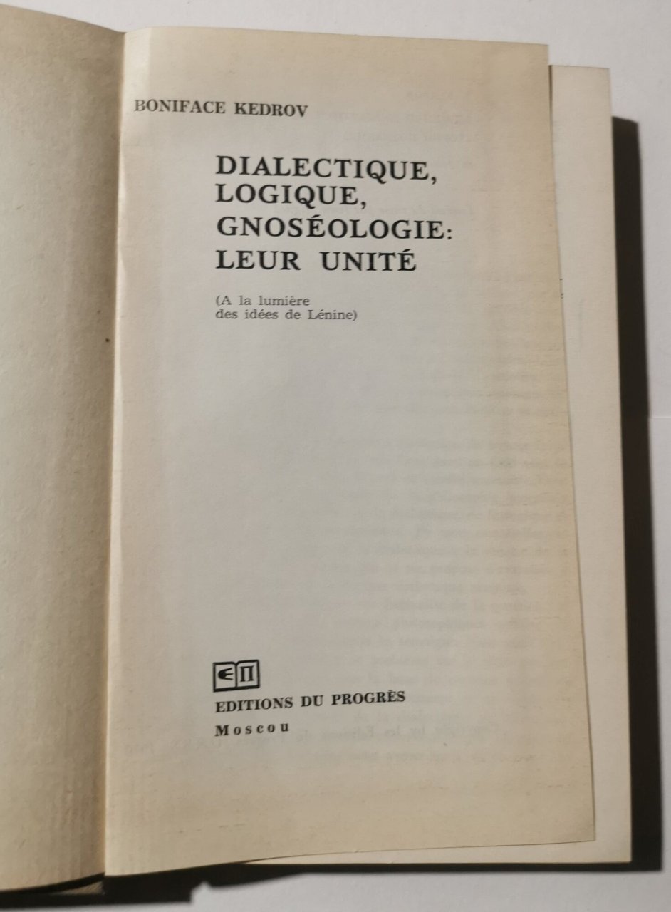 Dialectique, logique, gnoseologie: leur unité ( a lumière des idées de Lénine )