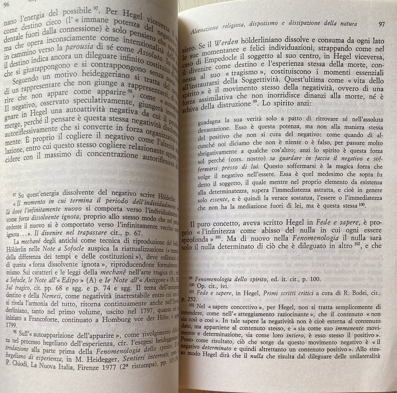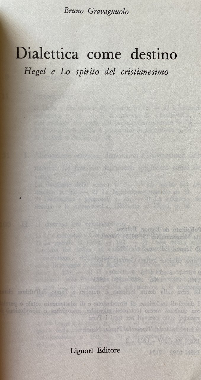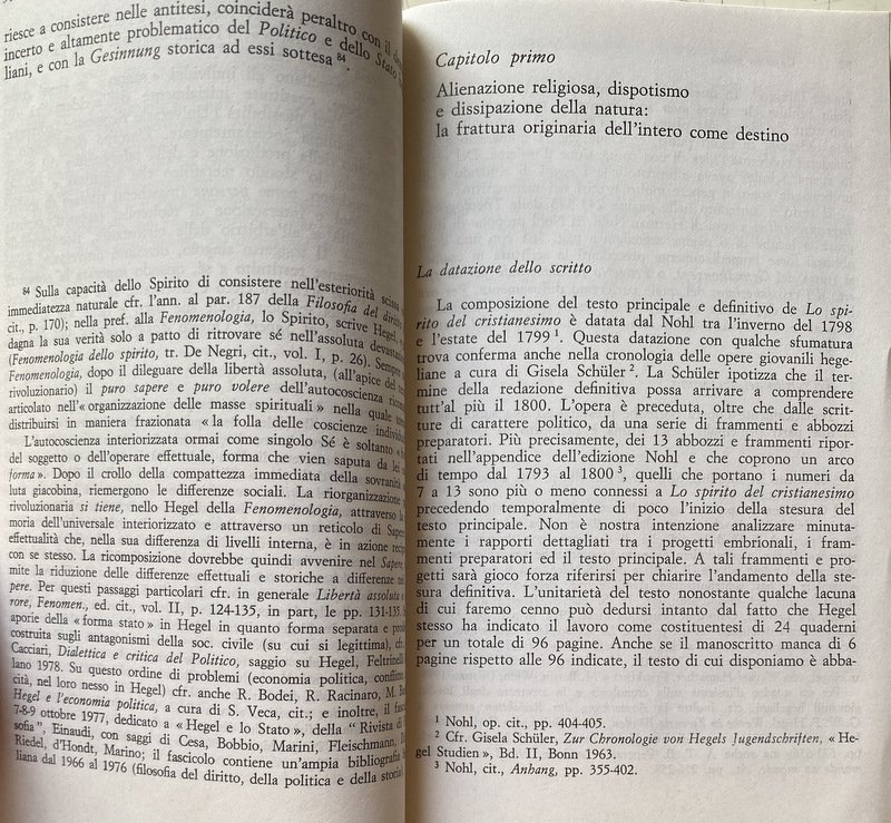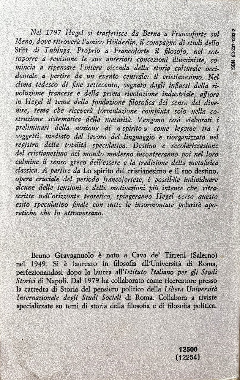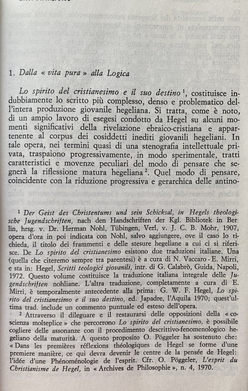 Soggetti: Dialettica, Filosofia, Metafisica, Cristianesimo, Idealismo tedesco, Scuola di Francoforte, Holderlin, Poesia, Critica, Interpretazione, Letteratura hegeliana, Studi culturali, Teologia, Religione, Dio, Teoretica, Speculazione, Fenomenologia, Spirito, Illuminismo, Spiritualità, Ontologia, Libri rari Vintage fuori catalogo, Secolarizzazione, Chiesa, Destino, Contraddizioni, Divenire, Scritti giovanili, Logica, Franco Chiereghin, Cassirer, Adorno, Claudio Cesa, Agamben, Agostino, Giovanni Vittorio Amoretti, Arnaud, Hannah Arendt, Aristotele, Bloch, Bobbio, Nicola Badaloni, Remo Bodei, Cacciari, Cantillo, Gaetano Della Volpe, Mario Dal Pra, Enrico De Negri, Antonio Negri, Toni Negri, Nietzsche, Dilthey, Lukács, Philosophie, Politica, Popper, Renaissance, Heidegger, Gentile, Goethe, H. G. Gadamer, Jaspers, Kant, Benedetto Croce, Marcuse, Kierkegaard, Kojève, Sartre, Coscienza, Assoluto, Essere, Identità, Universale, Determinatezza, Dialettica, Differenza, Fenomenologia dello spirito, Fichte, Diritto, Giudizio, Jenenser, Logik, Kant, Accidentale, Altro, Autocoscienza, Infinito, Intelletto, Jena, Metafisica, Molteplicità, Novalis, Pensiero positivo, Ragione, Romanticismo, Schelling, Schiller, Friedrich Schlegel, Schleiermacher, Carl Schmitt, Scienza, Sillogismo, Sostanza, Spinoza, Stoicismo, Teleologia, Totalità, Verità, Metodo, Natura, Marx, Marxismo, Lenin, Germania, Metafisica, Derrida, Diotima, Meister Eckart, Feuerbach, Fichte, Edward Gibbon, Johannes Hoffmeister, Lezioni, Habermas, Novecento, Filologia, Esegesi, Hyppolite, Jacobi, Klopstock, Sergio Landucci, Lessing, Lowith, Leo Lugarini, Nicolao Merker, Edoardo Mirri, Johann Lorenz von Mosheim, Ebraismo, Adriaan Theodoor Peperzak, Poggeler, Roberto Racinaro, Johann M. Riedel, K. Rosenkranz, Mario Rossi, Gioele Solari, Gesù Cristo, Herman Nohl, Jean Whal, Carlo Augusto Viano, Tommaso d'Aquino, Dorotea Veit, V. Vella, Totalitarismo, Libri universitari, Umanistica, Giovane, Rivelazione, Destino, Salvezza, Cultura ebraica, Tradizione, Der Geist des Christentums, Schriften, Unveröff, Soggettività, Storia, Società, Legge, Forma, Fede, Divinità, Phénoménologie, Esprit, Amore, Sollen, Ganze, Bewusstsein, Judend, Alterità, Scritti teologici, Positività, Volks, Grecia, Dèi, Immaginazione, Fantasia religiosa, Tedeschi, Destino, Libertà, Ribellione, Gesinnung, Noè, Nimrod, Abramo, Werden, Anschausen, Intuizione, Vita, Opere, Castigo, Colpa, Peccato, Riconciliazione, Intero, Ontologia, Platone, Timeo, Sensibilità, Autonomia, Logos, Mitologia, Miti greci, Egitto, Ente, Autoestraniazione, Frammenti, Ercole, Enzo Paci, Parmenide, Rosenzweig, Joachim Ritter, Gottlob Christian Storr, Tubinga, Johann Friedrich Flatt, Georg Wilhelm Friedrich Hegel, Zeit, Zenone, Dialektik, Negatività, Herder, Haering, Fatta, Dialectics, Philosophy, Metaphysics, Christianity, German Idealism, Frankfurt School, Poetry, Criticism, Interpretation, Hegelian Literature, Cultural Studies, Theology, Religion, God, Theoretical, Speculation, Phenomenology, Spirit, Enlightenment, Spirituality, Ontology, Rare books out of print, Secularization, Church, Destiny, Contradictions, Becoming, Youth writings, Augustine, Aristotle, Politics, Consciousness, Absolute, Being, Identity, Universal, Determination, Dialectic, Difference, Phenomenology of spirit, Law, Judgment, Accidental, Other, Self-awareness, Infinity, Intellect, Metaphysics, Multiplicity, Positive thinking, Reason, Romanticism, Science, Syllogism, Substance, Stoicism, Teleology, Totality, Truth, Method, Nature, Germany, Metaphysics, Lessons, Twentieth century, Philology, Exegesis, Judaism, Totalitarianism, University books, Humanities, Young, Revelation, Destiny, Salvation, Jewish culture, Tradition, Subjectivity, History, Society, Law, Shape, Faith, Divinity, Love, Otherness, Theological writings, Positivity, Greece, Gods, Imagination Religious fantasy, Germans, Destiny, Freedom, Rebellion, Noah, Abraham, Intuition, Life, Works, Punishment, Guilt, Sin, Reconciliation, Whole, Ontology, Plato, Timaeus, Sensitivity, Autonomy, Logos, Mythology, Greek myths, Egypt , Entity, Self-estrangement, Fragments, Hercules, Parmenides