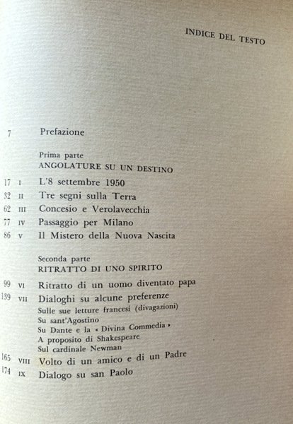 Un uomo, un laico che ha avuto l'occasione, nel corso di numerosi incontri, di interrogare e di essere interrogato dal papa. Quei dialoghi, quei momenti privilegiati si sono depositati dentro di lui, e, spogliati della loro veste contingente, hanno acquistato un'intima, profonda risonanza. Sarebbe vano cercare in un libro come questo indiscrezioni, minuzie, aneddoti intorno a un pontificato: è tuttavia possibile scorgervi i tratti di una figura terrena, concreta, con esitazioni, affaticamenti umani, il ritratto di una natura e di un carattere diventati, senza cancellarsi, veicoli di una realtà che li trascende. Ed è possibile cogliervi il tono di una voce alta e ferma, ma incrinata talvolta da una segreta angoscia quando le accade di soffermarsi sul disordine, sul dolore, sulla cecità umana.