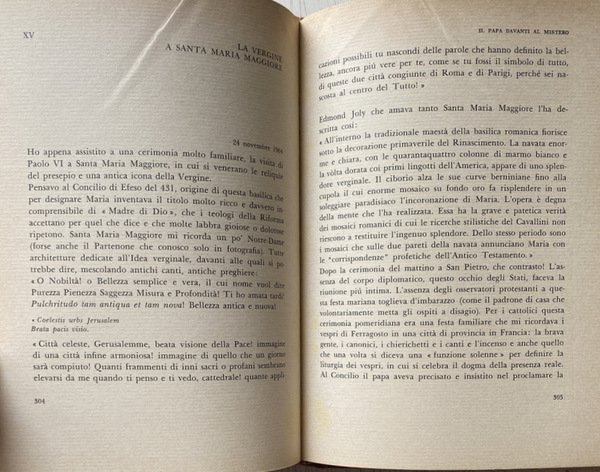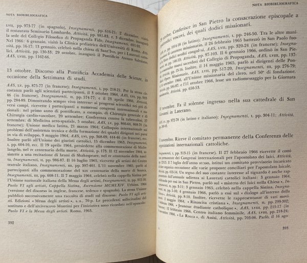 Soggetti: Religione, Teologia, Cristianesimo, Biografie, Memorie, Dialoghi, Colloqui, Discorsi, Taccuini, Giovanni Battista Montini, Papa Paolo VI, Appunti, Chiesa, Documenti, Fonti, Archivio, Storia contemporanea, Chiesa conciliare postconciliare, Doveri, Proclamazione, Verità, Dottrina, Sommo Pontefice, Personaggi religiosi, Spiritualità, Leader cristiani, Cattolicesimo romano, Accuse, Luce, Ecumenismo, Catechesi, Scomunica, Disobbedienza, Eresia, Modernismo, Modernità, Concilio Vaticano II, Pio XII, Politica italiana, Sinistra, Indecisionismo, Matrimonio, Strumentalizzazione, Alcide De Gasperi, Partito popolare, Personalità, Encicliche, Bolle, Enciclica Humanae vitae, Profezie, Salvezza, Viaggio, Terrasanta, Via Crucis, Anfiteatro Flavio, Giornata Mondiale della pace, Dialogo ecumenico, The Pope Speaks, Yves Congar, Lettere, Carteggio, Giorgio La Pira, Maria Chiara Rioli, The Divided Pope, Papi, Pontefici, Soglio, Elezioni papali, Vescovi, Cardinali, Clero, Gerarchia ecclesiastica, Polemiche, Dispute, Controversie religiose, Filosofia delle religioni, Libri illustrati, Collezionismo, Libri Vintage fuori catalogo, Riferimento, Bibliografia, Bestseller, Interviste, India, San Pietro, Fedeli, Laici, Mistero, Nuova Nascita, Sant'Agostino, Intellettuali, Cultura, Dante Alighieri, Divina Commedia, Amicizie, Milano, Cardinale John Henry Newman, Predicazione, don Primo Mazzolari, Divo Barsotti, padre David Maria Turoldo, Ernesto Balducci, Nazareno Fabbretti, Giulio Bevilacqua, Camillo De Piaz, Conclave, Riforme, Unità, Cristianità, Mystici Corporis Christi, Corpo mistico, Cristo, Nota Praevia, Primato, Pontificato, Lumen Gentium, Costituzione dogmatica, Angelo Dell'Acqua, Sant'Uffizio, Terzo segreto di Fatima, Sinodo, Evangelizzazione, Curia, Diritto canonico, Matrimoni misti, Controllo delle nascite, Canonizzazione, Giovanni XXIII, Dichiarazione comune cattolico-ortodossa, Scomuniche, Confessioni, Riconciliazione, Chiesa ortodossa, Anni Sessanta, Cattolicesimo tradizionale, Santi, Coscienza, Ideologie, Marxismo, Laicismo, Anticlericalismo, Società civile, Sessantotto, Aspettavamo la primavera, ed è venuta la tempesta, Indice, Libri proibiti, Firenze, Alluvione, Crocifisso, Cimabue, Celibato sacerdotale, Sacerdotalis Caelibatus, Concilio di Trento, Ecclesiae Sanctae, Motu proprio, Burocrazia, Pontificalis Domus, Nobiltà, Corte papale, Guardia Svizzera, Humanae Vitae, Contraccezione, Vita coniugale, Procreazione, Fecondazione artificiale, Sessualità, Paolo Mesto, Magistero, Casti Connubii, Anticoncezionali, Aborto, Paternità responsabile, Maternità, Figli, Amore, Famiglia, Liturgia, Messa, Preghiera, Riforma liturgica, Mediator Dei, Settimana santa, Battesimo, Funerali, Messale Romano, Riti, Lingua latina, Rituali latini, Sacramenti, Canti, Musica sacra, Canto gregoriano, Polifonia, Attentato, Celebrazioni, Taranto, Italsider, Natale, Franco Morabito, L'acciaio di Natale, Lavoro, Calendario, Bambini, Liturgia Horarum, Breviarium Romanum, Cresima, Tonsura, Unzione, Infermi, Manila, Filippine, Benjamin Mendoza y Amor Flores, Pasquale Macchi, Anno santo, 1975, Rinnovamento, Franco Zeffirelli, Giubileo, Omosessualità, Roger Peyrefitte, Paul Hofmann, Paolo Carlini, Sequestro, Rapimento, Omicidio, Aldo Moro, Liberazione senza condizioni, Brigate Rosse, Marcel François Lefebvre, Messa tridentina, Karol Wojtyla, Joseph Ratzinger, Albino Luciani, Richard Nixon, Jugoslavia, Tito, Guerra Fredda, Martin Luther King, John Kennedy, Re Hussein di Giordania, Michael Ramsey, Charles de Gaulle, Mense Maio, Tommaso d'Aquino, Dialettica, Pellegrinaggio, Emmaus, Rivelazione, Conversazioni, Fotografie d'epoca, Israele, Gerusalemme, Maria Vergine, Santa Maria Maggiore, Castelgandolfo, Residenze, Anni Settanta, Contestazione, Religion, Theology, Christianity, Biographies, Memoirs, Dialogues, Colloquies, Speeches, Notebooks, Pope Paul VI, Notes, Documents, Sources, Archives, Contemporary history, Post-conciliar conciliar Church, Duties, Proclamation, Truth, Doctrine, Supreme Pontiff, Religious figures, Spirituality, Roman Catholicism, Accusations, Light, Ecumenism, Catechesis, Excommunication, Disobedience, Heresy, Modernism, Modernity, Second Vatican Council, Pius XII, Italian politics, Left, Marriage, Instrumentalization, People's Party, Personalities, Encyclicals, Bubbles, Prophecies, Salvation, Journey, Holy Land, World Day of Peace, Ecumenical Dialogue, Letters, Correspondence, Popes, Pontiffs, Throne, Papal Elections, Bishops, Cardinals, Clergy, Ecclesiastical Hierarchy, Polemics, Disputes, Religious Controversies, Philosophy, Illustrated books, Collectables, Out-of-print books, References, Bibliography, Bestsellers, Interviews, St. Peter's, Faithful, Laity, Mystery, New Birth, St. Augustine, Intellectuals, Culture, Divine Comedy, Friendships, Milan, Cardinal, Preaching, Conclave, Reforms, Unity, Christianity, Mystical Body, Christ, Primacy, Pontificate, Dogmatic Constitution, Holy Office, Third Secret Fatima, Synod, Evangelization, Canon Law, Mixed Marriages, Birth Control, Canonization, John XXIII, Common Catholic-Orthodox Declaration, Excommunications, Confessions, Reconciliation, Orthodox Church, Sixties, Traditional Catholicism, Saints, Conscience, Ideologies, Secularism, Anticlericalism, Civil society, Sixty-eight, We waited for spring and the storm came, Index, Forbidden books, Florence, Flood, Crucifix, Priestly celibacy, Council of Trent, Bureaucracy, Nobility, Papal court, Swiss Guard, Contraception, Married life, Procreation, Artificial insemination, Sexuality, Magisterium, Contraceptives, Abortion, Responsible parenthood, Maternity, Children, Love, Liturgy, Mass, Prayer, Liturgical reform, Holy Week, Baptism, Funerals, Roman Missal, Rites, Latin language, Latin rituals, Sacraments, Songs, Sacred music, Gregorian chant, Polyphony, Attack, Celebrations, Christmas, Work, Confirmation, Tonsure, Anointing, Infirm, Philippines, Holy Year, Renewal, Jubilee, Homosexuality, Kidnapping, Kidnappin