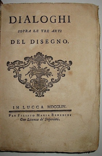 8vo (cm. 18,7), VIII-269 pp. Assente l’antiporta incisa su rame. Legatura coeva in mz. pelle (tracce d’uso, abrasioni e cerniere deboli). Ottimi interni in barbe. Edizione originale, rara e pregiata, di un dialogo immaginario tra Giampietro Bellori, ‘celebre antiquario’, e Carlo Maratta, ‘eccellente pittore’. Parenti, 98; Melzi I, 291; Gamba (2174): ‘Questi Dialoghi. diventarono rari’. ‘Nel Bottari si nota un originale e specifico interesse per le tecniche della conservazione e del restauro che a giusta ragione è stato di recente posto in rilievo’ cfr. Dizionario bibliografico degli Italiani.