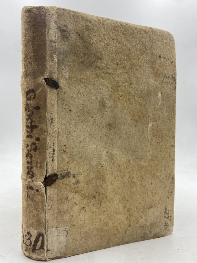 • Cartone rustico settecentesco con lievi segni del tempo, margini delle pagine un poco rifilati, tenue gora sul margine esterno di alcune carte ma complessivamente buon esemplare. Legatura un po’ allentata.