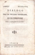 DIALOGO TRA UN VECCHIO VENEZIANO, ED UN FORESTIERE SOPRA IL CAMBIAMENTO DI GOVERNO- LIBERTA', EEGUAGLIANZA - ITALIA ANNO PRIMO DELLA LIBERTA' ITALIANA