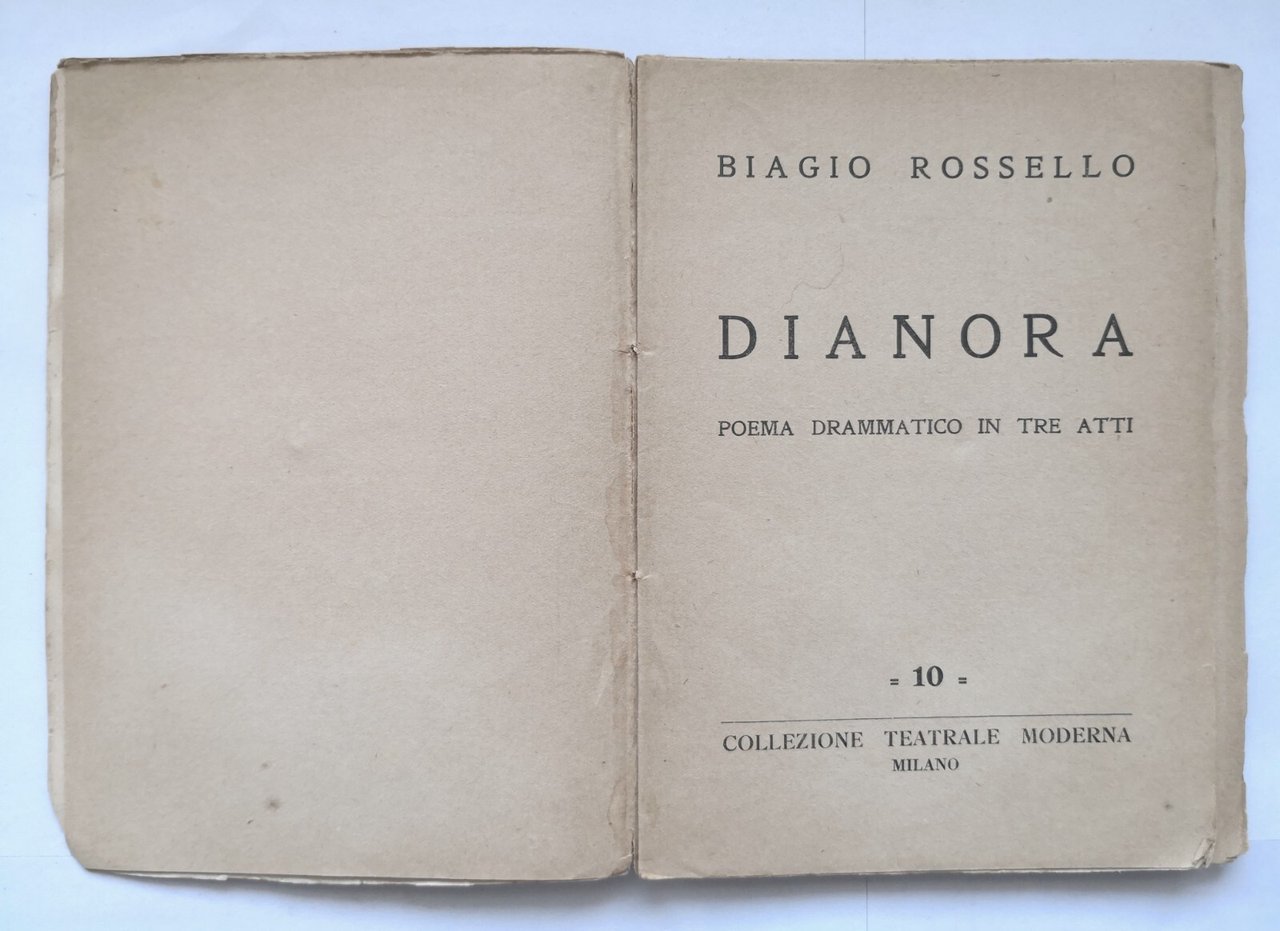 DIANORA poema drammatico in tre atti di Biagio Rossello 1933 Zerboni Libro teatr
