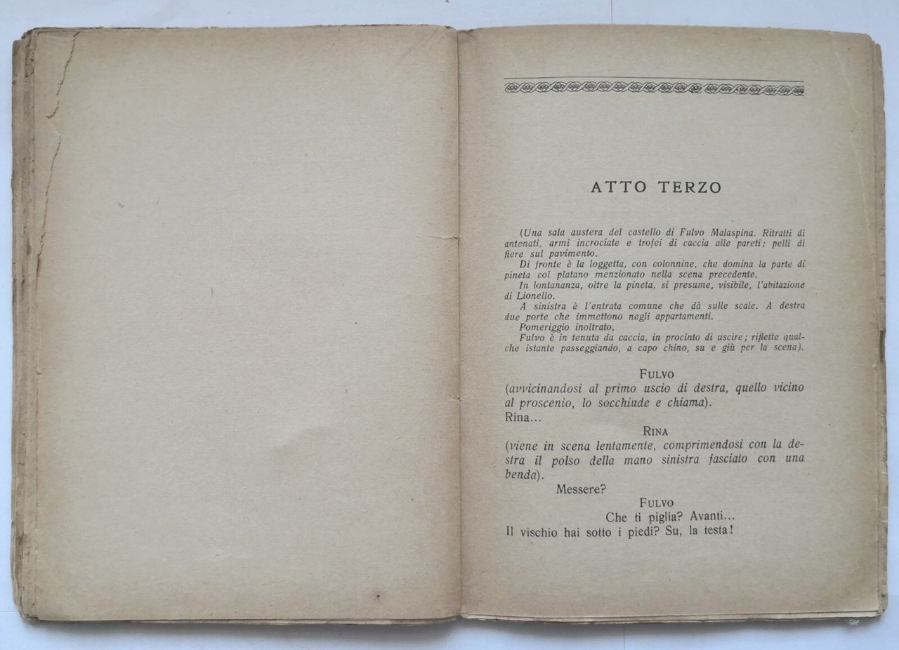 Editore Tipografia E. Zerboni, 1933. Collana "Collezione Teatrale Moderna" numero 10. 82 pagine. Copertina editoriale in brossura. Stato di conservazione: buono (pagine ingiallite, copertina sporca, scritta a penna alla guardia posteriore) Libro usato teatro