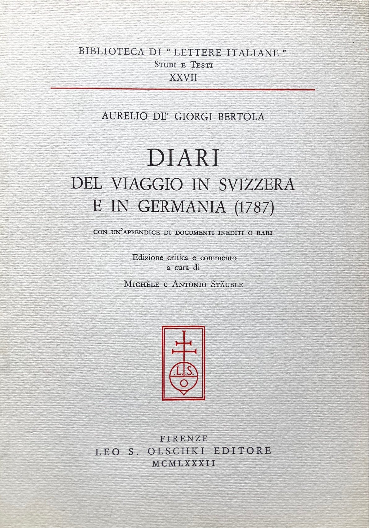 Diari del viaggio in Svizzera e in Germania (1787). Appendice di documenti inediti e rari. <BR>Edizione critica e commento a cura di Michèle e Antonio Stauble.<BR>Edizione sostenuta dal Fondo nazionale svizzero per la ricerca scientifica. 1.000 copie