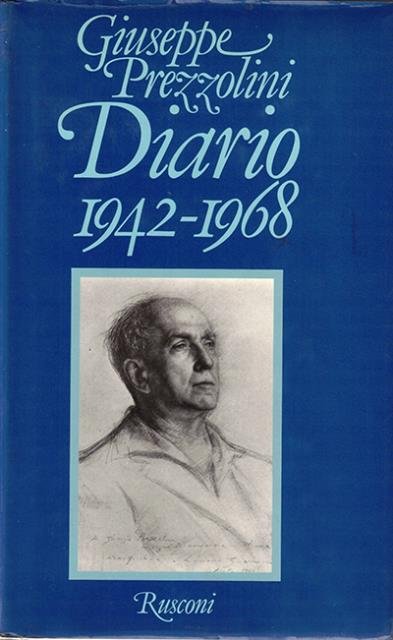 2. ed. 504 p. ; 22 x 14 cm. Lo scenario iniziale di Diario 1942-1968 è New York dove Prezzolini ha vissuto e lavorato da esule: a fine diario ritroviamo Prezzolini esule a Lugano. Prezzolini, «anarchico» singolare, ha avuto l'incredibile destino di studiare, giudicare e amare l'Italia da lontano. Ma i suoi diari, austeri, egoistici, spregiudicati, icastici, analitici, ironici e stupendamente sinceri documentano molte altre ardenti passioni dello scrittore; non a caso, nell'epigrafe di questo volume Prezzolini, citando un anonimo italiano del '400, avverte: «Qui si parla d'amor, se non vi spiace». Legatura editoriale, coperta in cartone rigido telato di colore rosso con tioli in nero al dorso, muto il piatto. Sovraccoperta illustrata con un ritratto in bianco e nero di Giuseppe Prezzolini in carta patinata lucida e colorata. Codice libreria 9990.