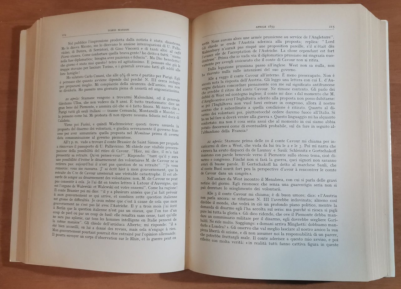 DIARIO DALLE CENTO VOCI 1858 1860 di Giuseppe Massari 1959 Cappelli libro storia