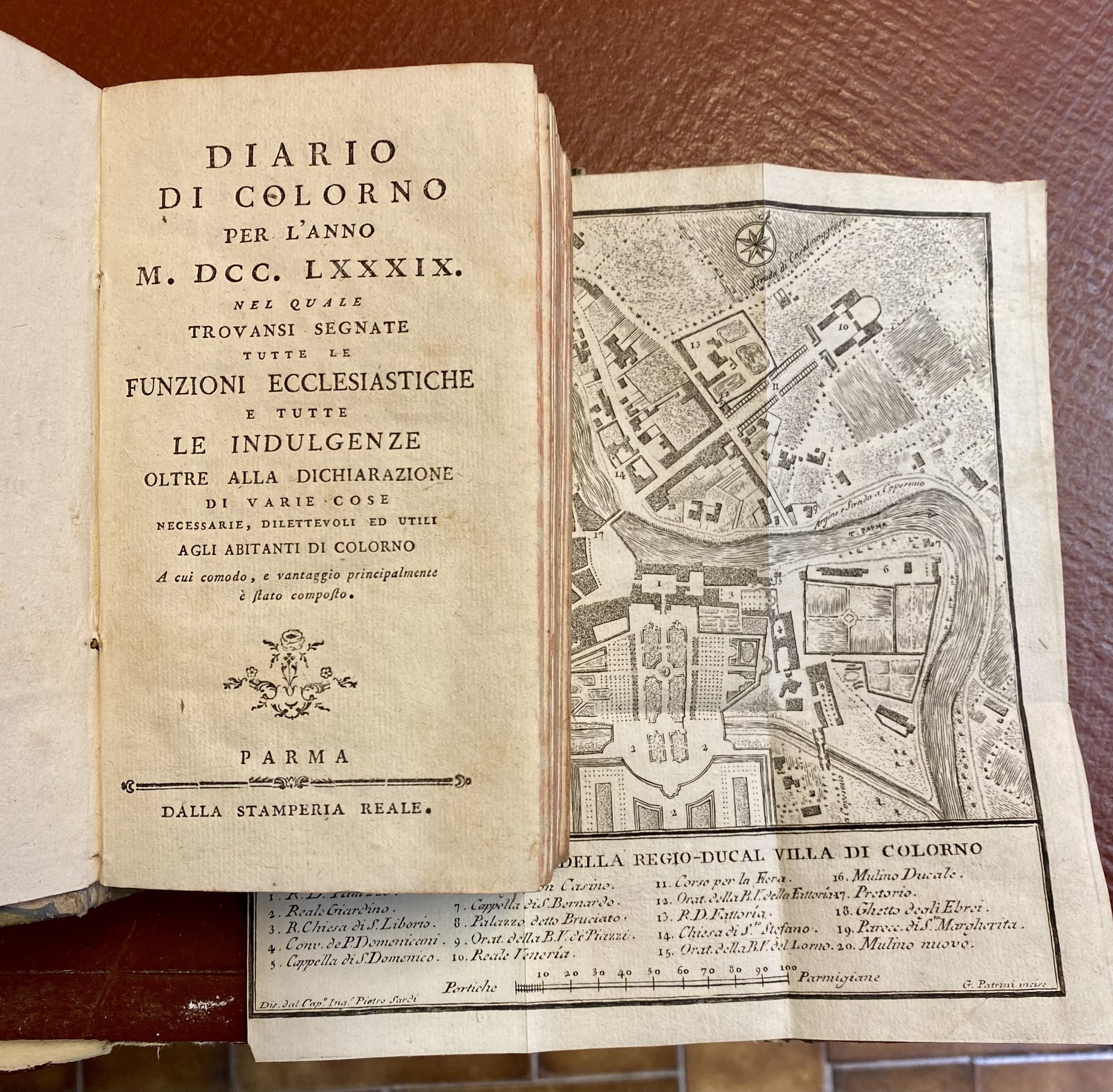 Diario di Colorno per l'anno MDCCLXXXIX (1789) nel quale trovasi segnate tutte le funzioni ecclesiastiche e tutte le indulgenze oltre alla dichiarazione di varie cose necessarie, dilettevoli ed utili agli abitanti di Colorno