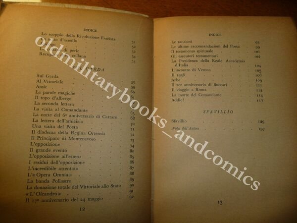 DESCRIZIONE: Mondadori Milano 1941 I^ Ed. br. ed. con sovracc. pp. 203 e 21 facsimili di lettere di Gabriele D'Annunzio a fine vol., e 8 ill. b/n f.t. in 16°. Diario del funzionario assegnato da Mussolini a D'Annunzio CONDIZIONI: Discrete/Buone, manca la sovracc. in carta trasparente, ed il volume nella parte finale, delle lettere, è interessato da gore di umidità, come da foto. Piccola rottura alla parte alta del dorso. PESO / WEIGHT: 400 gr. without package