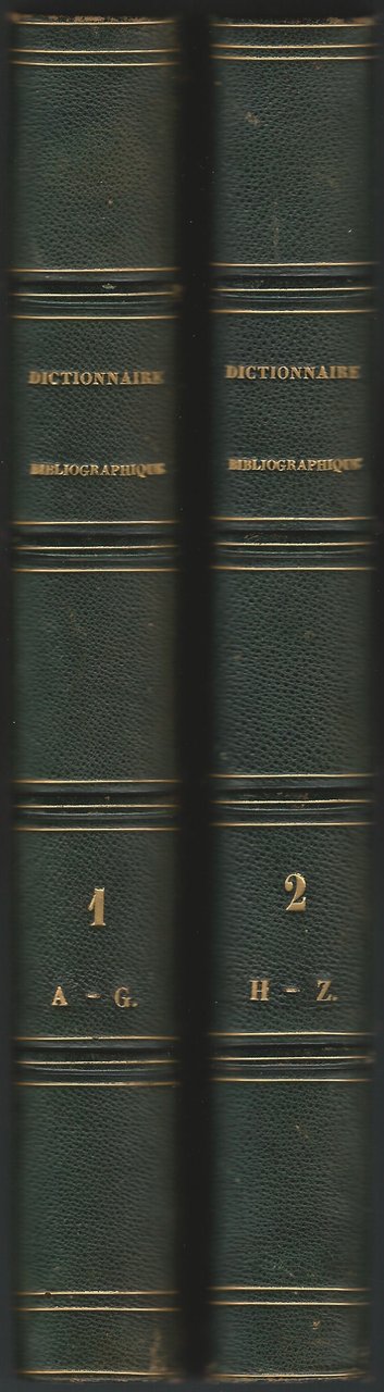 2 voll. in 8, p. VIII - 264 - II - 264, (4) 507; ottima leg. d'epoca in mz. pl. con punte, tit. e fregi in oro al dorso; qualche fioritura ma es. in ottimo stato di conservazione. - Edizione originale ed unica di quest' opera che oltre alle schede bibliografiche contiene un "Essai élémentaire sur la bibliographie" (264 pagine).