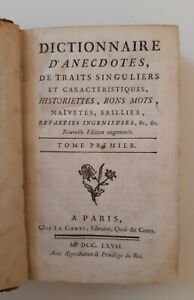 DICTIONNAIRE D'ANECDOTES DE TRAITS SINGULIERS ET CARACTERISTIQUES HISTORIETTES BON MOTS