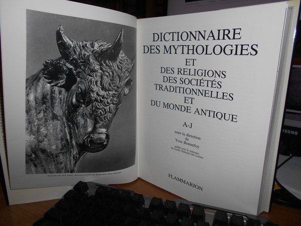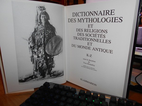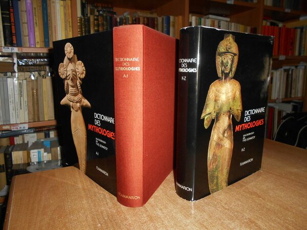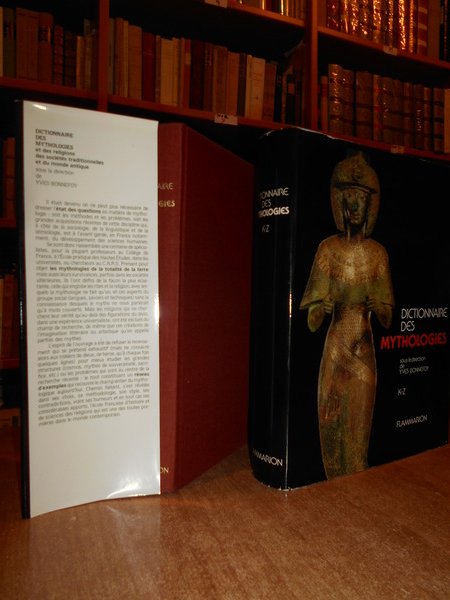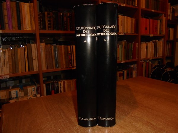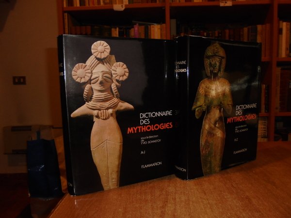 Sous la direction de YVES BONNEFOY. Paris, Flammarion, 1981. DICTIONNAIRE DES MYTHOLOGIES et DES RELIGIONS des Sociétés traditionelles et du monde antique. 2 volumi in-4°, tela edit. bordeaux con titoli in oro ai dorsi, sovracopertine ill. a col. xxiv, 618 pp.; 585 pp. I due volumi sono corredati da innumerevoli illustrazioni in bianco e nero n.t. Libri come nuovi, le sovracopertine presentano lievi sbucciature nei margini. Uff. stanzetta mob. a destra.
