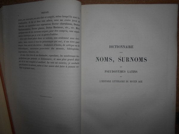 DICTIONNAIRE DES NOMS, SURNOMS ET PSEUDONYMES LATINS DE L'HISTOIRE LITTÉRAIRE DU MOYEN AGE (1100 À 1530). I