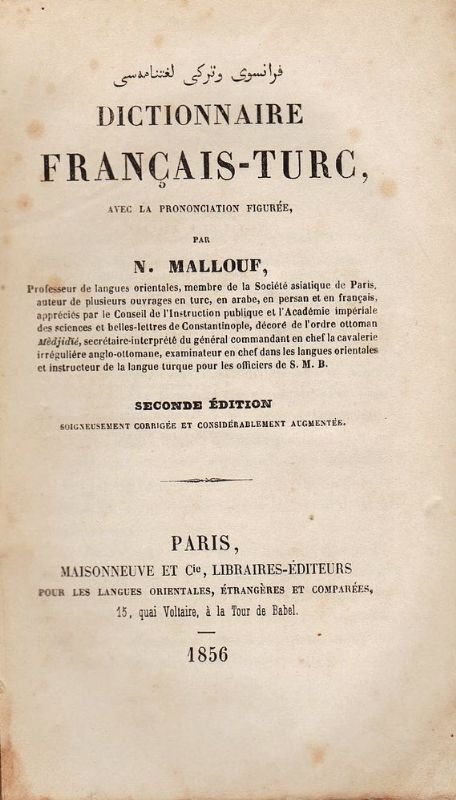 Dictionnaire Français-Turc, avec la prononciation figurée (.) Seconde Edition soigneusement corrigée et augmentée.