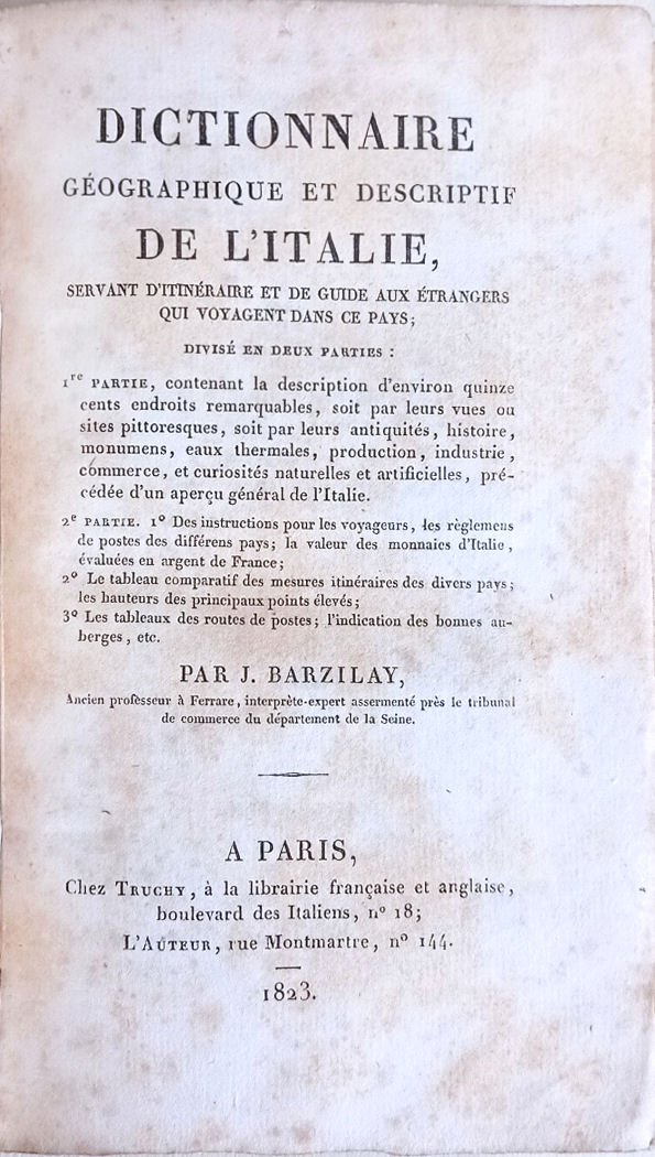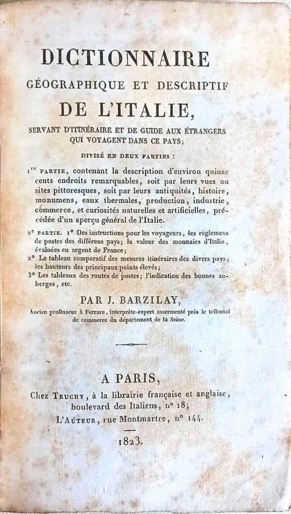 Dictionnaire géographique et descriptif de l'Italie, servant d'itinéraire et de guide aux étrangers qui voyagent dans ce pays.