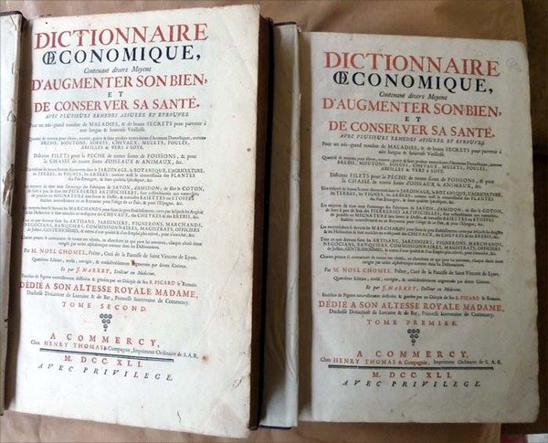 Dictionnaire oeconomique contenant divers Moyens d'Augmenter son Bien et de Conserver sa Santé avec plusieursremèdes assurez et eprouvez pour un très grands nombres de maladies, et de Beaux Secrets. dédié à son Altesse Royale Madame Duchesse Doüairière de Lorraine. Quatrième édition revue et corrigée
