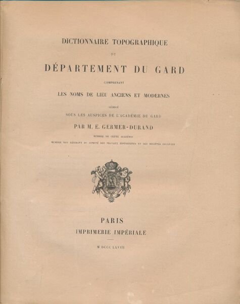 Dictionnaire topographique du département du Gard comprenant les noms de lieux anciens et modernes