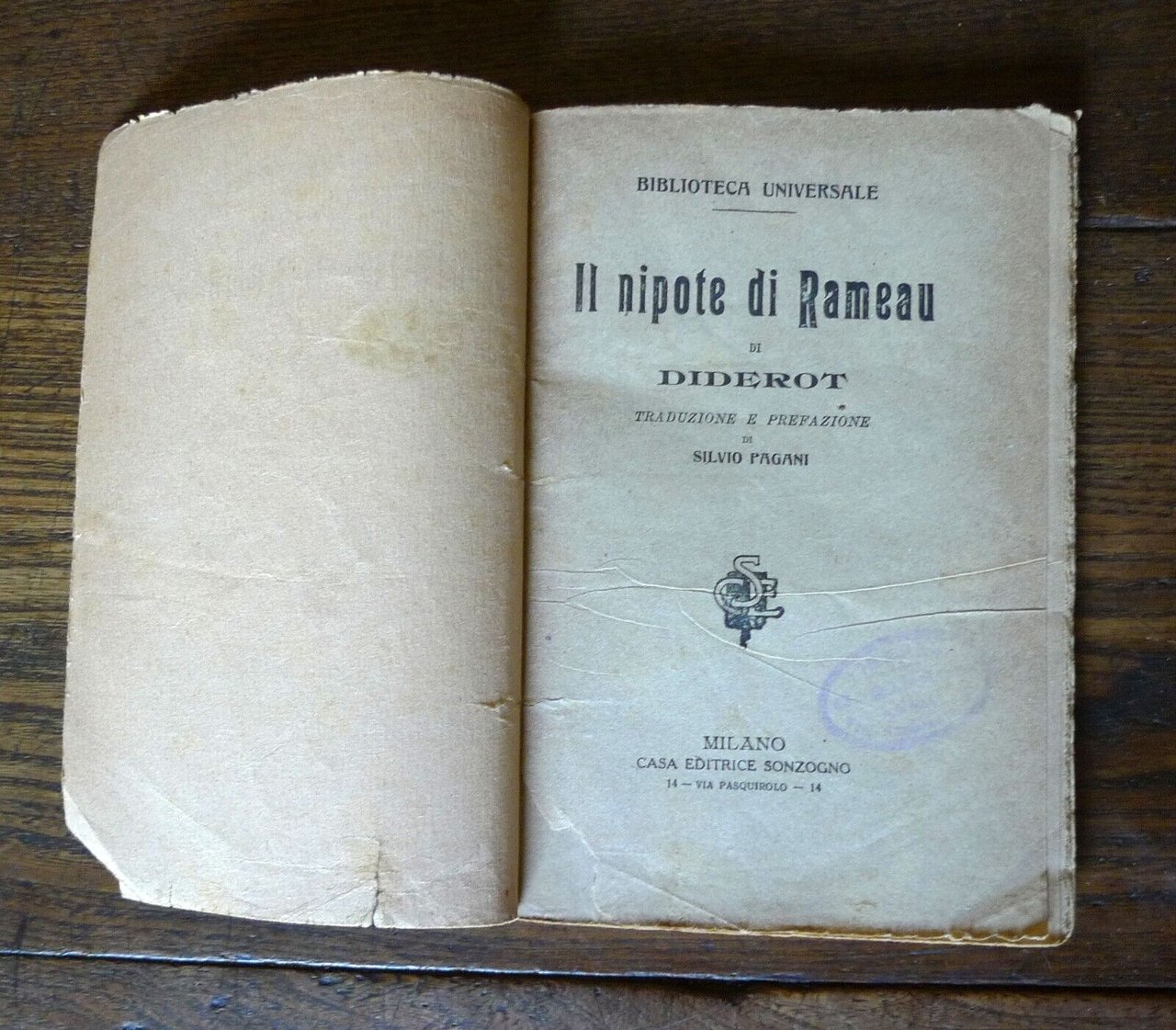 Diderot,IL NIPOTE DI RAMEAU,Sonzogno BIBLIOTECA UNIVERSALE