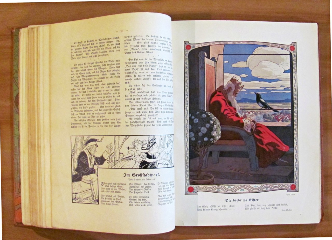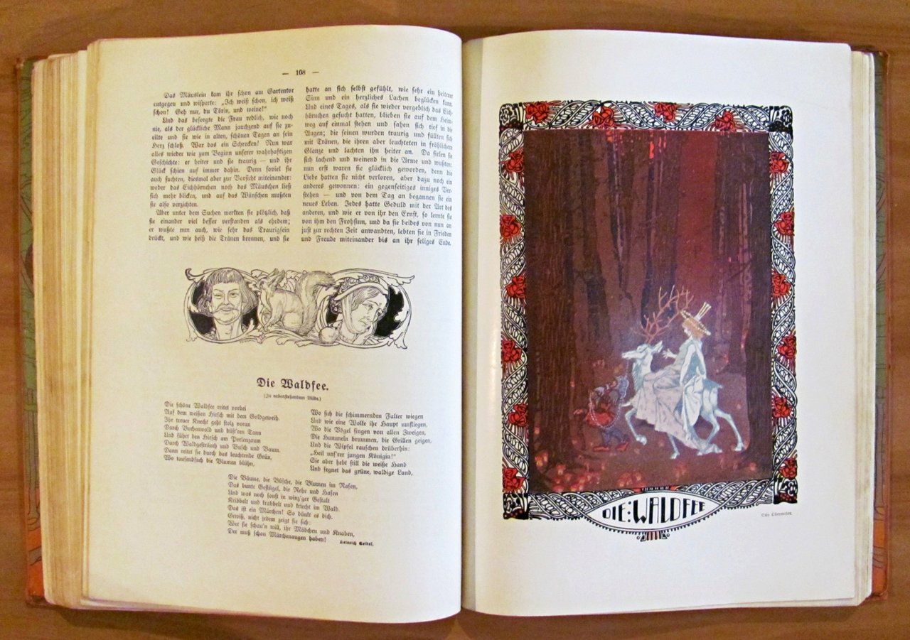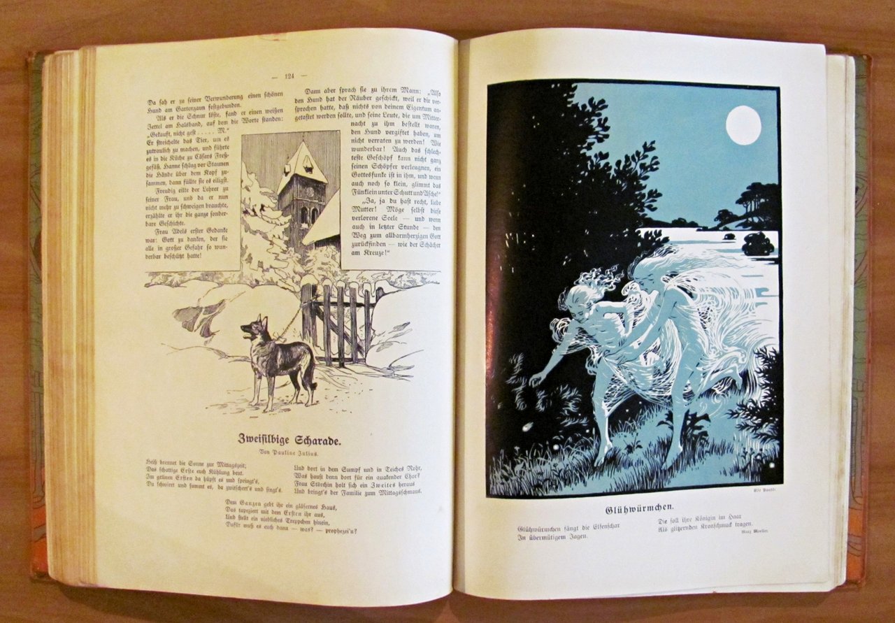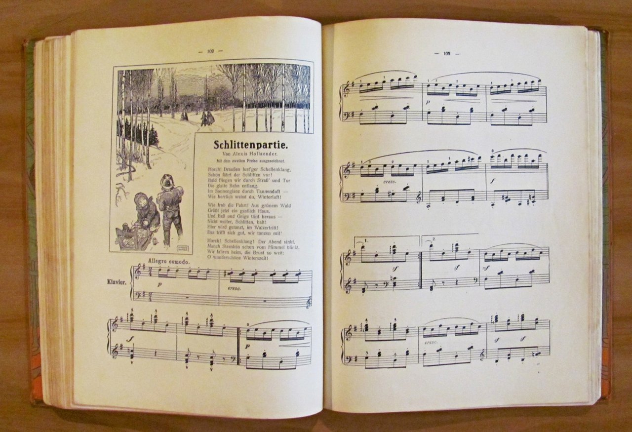 Moltissime illustrazioni in b/n e a colori n.t., spartiti musicali e 24 splendide tavole a colori f.t. di vari illustratori. Verlag von August Scherl - Berlin, 1906. Cartonato editoriale con dorso in tela originale con qualche segno del tempo al dorso e bellissimi risguardi illustrati. Una pagina con angolo basso esterno restaurato. 23x31; pp.XI + 189. BUONISSIMO STATO , Molto buono (Very Good)