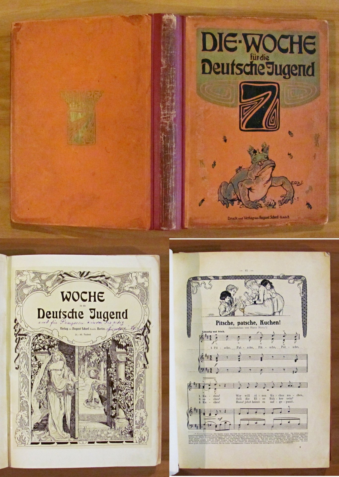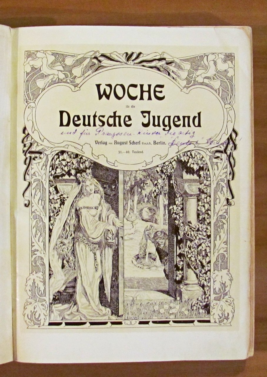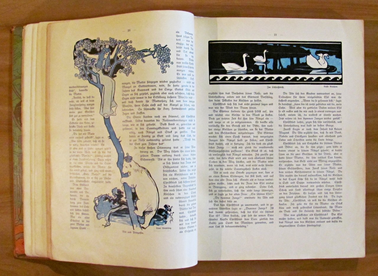 Moltissime illustrazioni in b/n e a colori n.t., spartiti musicali e 24 splendide tavole a colori f.t. di vari illustratori. Verlag von August Scherl - Berlin, 1906. Cartonato editoriale con dorso in tela originale con qualche segno del tempo al dorso e bellissimi risguardi illustrati. Una pagina con angolo basso esterno restaurato. 23x31; pp.XI + 189. BUONISSIMO STATO , Molto buono (Very Good)