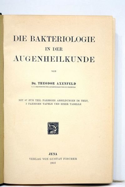 Die bakteriologie in der augenheilkunde. Mit 87 zum teil farbigen abbildungen im texte, 3 farbigen tafeln und einer tabelle.