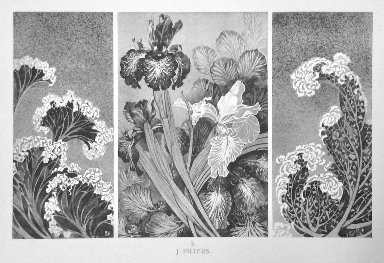 - ARTE DISEGNO GERMANIA 1900, PILTERS J. ART NOUVEAU FIORI DISEGNO