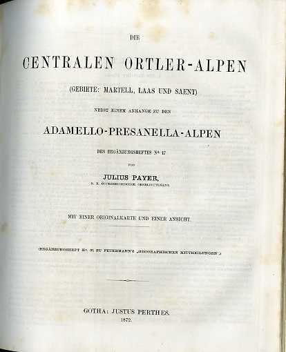Die centralen Ortler-Alpen (Gebiete: Martell, Laas und Saent): nebst einem Anhange zu den Adamello-Presanella-Alpen des Erganzungsheftes N. 17. | Libri antichi e moderni | Payer, Julius.