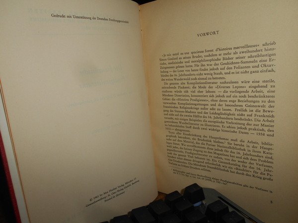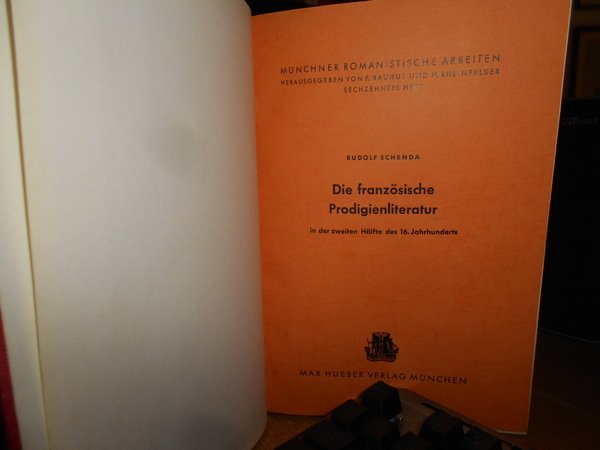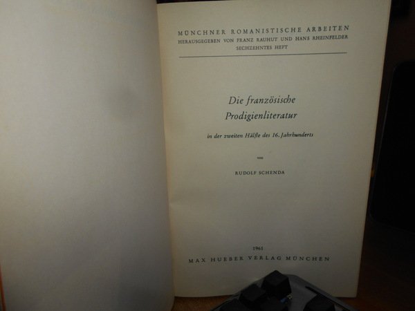 RUDOLF SCHENDA. München : Hueber, 1961. Die französische Prodigienliteratur in der zweiten Hälfte des 16. Jahrhunderts. In-8°, tela rossa con titolo in oro entro tassello al dorso, brossure originali conservate. 148 pp. Esemplare come nuovo. Uff. E - III - 4
