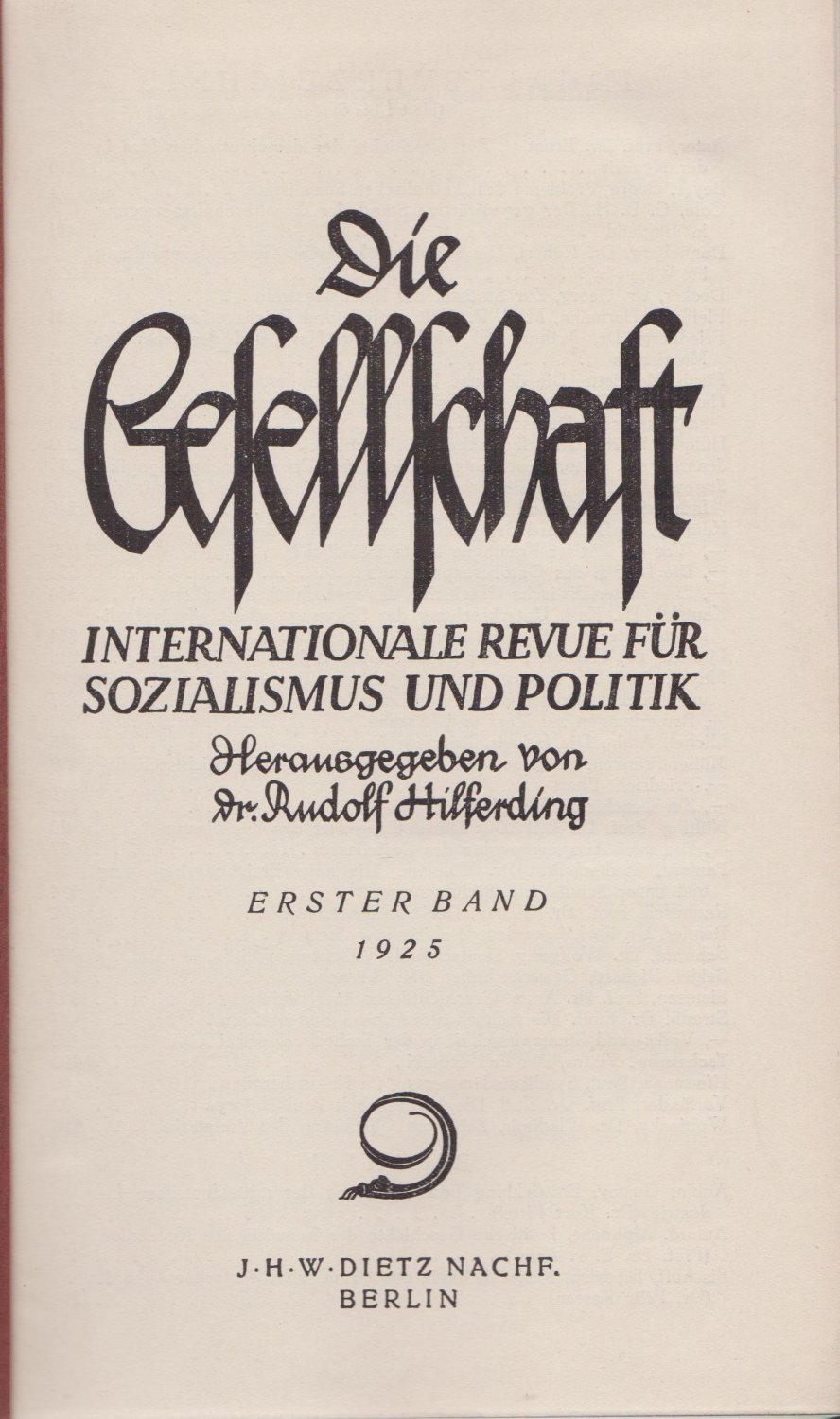 Mit Beiträgen von Karl Kautsky, Rudolf Hilferding, Ernst Hamburger Fritz Naphtali, Hermann Fleißner, Richard Seidel und anderen. - - -ACHTUNG! Dieses Buch kann wegen seines Gewichts oder seiner Größe nur als PAKET verschickt werden. Innerhalb Deutschlands 5,80 Euro. (Portokosten ins Ausland bitte erfragen.) / ATTENTION! Due to its weight or size this book can only be sent as a PARCEL. Within Germany 5,80 Euro (For shipment abroad please ask).-