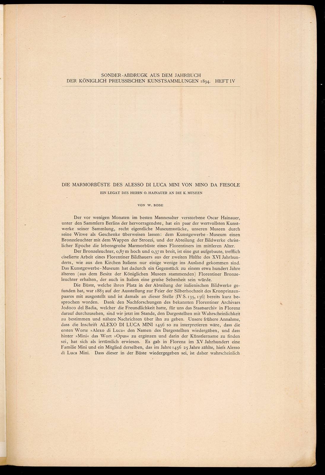 Opuscolo vintage in-4° con 3 pagg, 1894. Arte. Figura in nero all'interno del testo. Illustrazione in bn all'antiporta con carta velina. Testo in lingua tedesca. Note a matita in copertina.