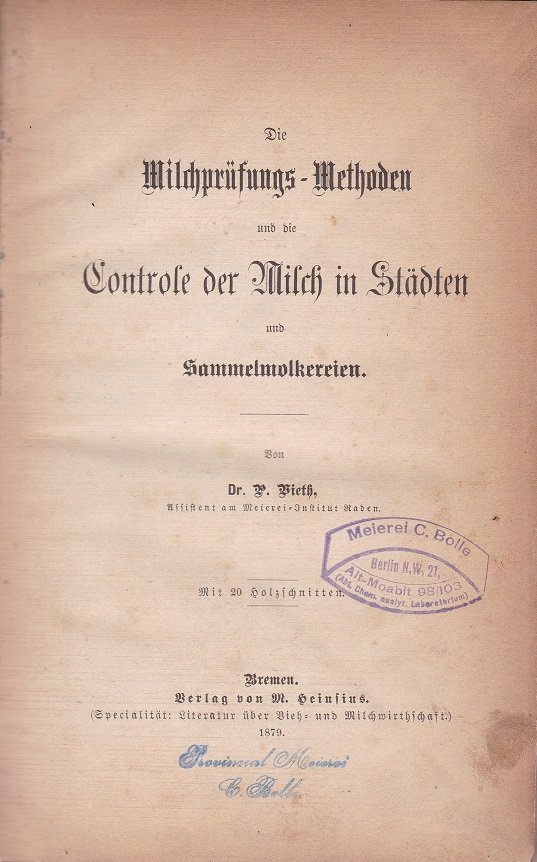 Die Milchprüfungs-Methoden und die Controle der Milch in Städten und Sammelmolkereien.