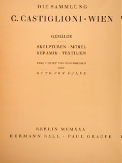 DIE SAMMLUNG C. CASTIGLIONI. WIEN. Gemalde. Skulpturen - Mobel - Keramik - Textilien.