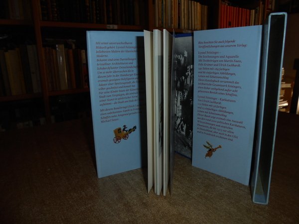 das Spielzeug von Lyonel Feininger. Printed in Italy, Köln: DuMont, 1998. Die Stadt am Ende der Welt. In-16°, tela edit. bleu con titolo al dorso, sovracopertina ill. a col. 59 pp. con numerose illustrazioni a colori n.t. Come nuovo con astuccio in cartonato illustrato a colori. Stanzetta mob. sinistra I - 5 carc.