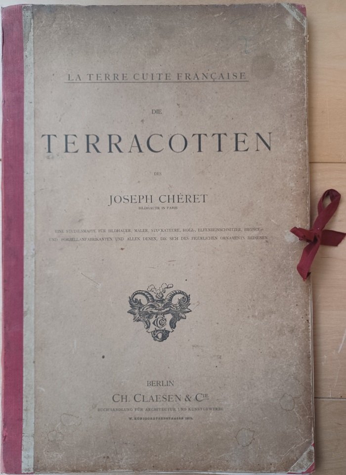 Zum Künstler vgl. Thieme/Becker 6,463. - Thieme/Becker nennt die 2.Auflage der Mappe von 1886. Der Künstler (1838-1894) gehörte zu den besten französischen Tonplastikern seiner Zeit Er arbeitete für die führenden Häuser wie Christofle, Grobé, Lubi, Pallemberg, Baccarat, Fourdinois etc. Seine Arbeiten wurden mehrfach prämiert.Die Mappe enthält 25 numerierte Blätter (Pl. 1-25) in hellbrauner Heliogravüre. Jedes Blatt trägt oberhalb der Abbildung die Titelbezeichnung der Figur und den Reihentitel LA TERRE CUITE FRANCAISE und ist in der Platte unten links außen bezeichnet Ch. Claesen, Editeuer, Paris, Liege, Berlin. Mittig werden die abgebildeten Plastiken in den Maßen angegeben, darunter Joseph Chéret, Sculpteuer, ÉDITEUR DE SES OEVRES, Paris, 15, Rue de la Tour d´Auvergne. Rechts außen: Heliog. Dujardin, Paris. Die Heliogravüren sind kräftig und wirken geradezu dreidimensional.